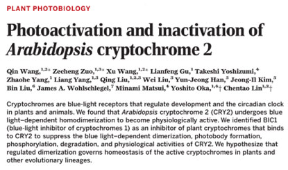 Qin Wang, Zecheng Zuo, Chentao Lin, et al., Photoactivation and inactivation of Arabidopsis cryptochrome 2. PLANT PHOTOBIOLOGY.(2016),VOL 354 ISSUE 6310.